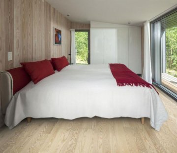 Бежевая двухполосная паркетная доска Kahrs Original Sand Ясень Фалстербо толщиной 15 мм без фаски на замковой системе Woodloc® 5S. Брашированная ламель ясеня толщиной 3,5 мм покрыта полуматовым лаком. Трёхслойная конструкция паркетной доски Песочной коллекции - Ясень Фалстербо (Ash Falsterbo) позволяет укладывать покрытие плавающим или клеевым способом. Средний слой состоит из хвойных пород, а верхний может подвергаться многократному шлифованию, тем самым значительно продлевая срок эксплуатации.