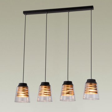 Уникальная модель V3011-4P от итальянской компании Moderli относится к коллекции Albert и отлично подойдет для установки на потолок кафе и ресторанов, оформленных в стиле модерн. Подвесной светильник Moderli Albert V3011-4P с плафонами-конусами осветит помещение площадью 10 кв. м. Производитель Moderli рекомендует использовать для устройства лампы накаливания с цоколем E27 и мощностью 60 W. Прибор произведен с использованием материалов: стекло и металл и может использоваться для натяжного потолка. Основным цветом товара является Золотой, Черный и Прозрачный. Подвесной светильник V3011-4P продается по цене 7990 руб, с дисконтом 60% - ваша выгода при покупке составит 12000 руб. Торопитесь сделать заказ в интернет-магазине Top Otdelka.