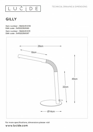 Поразительная модель 36612/03/30 со встроенным выключателем от бельгийской компании Lucide относится к коллекции Gilly и отлично подойдет для установки на стол офиса, оформленном в стиле хай-тек. Осветительный элемент встроен в конструкцию и не требует приобретения дополнительных лампочек. Прибор произведен с использованием материала: металл. Основным цветом товара является Черный. Настольная лампа 36612/03/30 продается по цене 6866 руб. Торопитесь сделать заказ в интернет-магазине Top Otdelka.
