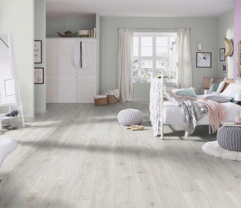 Однополосный ламинат 33 класса Vintage в декоре Дуб Шантилли (Chantilly Oak) белого цвета от производителя Kronospan толщиной 10 мм. Планки на замковой системе 1clic2go с фаской по периметру. Ламинированное напольное покрытие Vintage Дуб Шантилли (5953) продаётся упаковками по 7 планок размером 192×1285 мм общей площадью 1.727 м² .