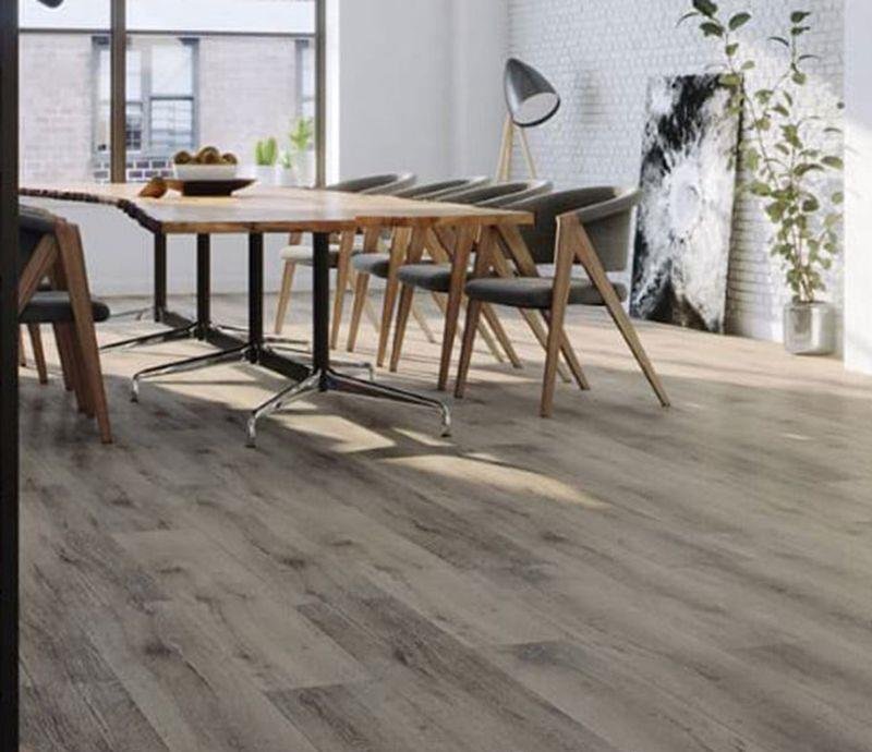 Минеральное виниловое покрытие 42 класса Amaron Wood Design в декоре Argos Oak серо-коричневого цвета с фаской по периметру для плавающего способа укладки, толщиной 5 мм от Польша производителя Arbiton. Дизайн выполнен под дерево