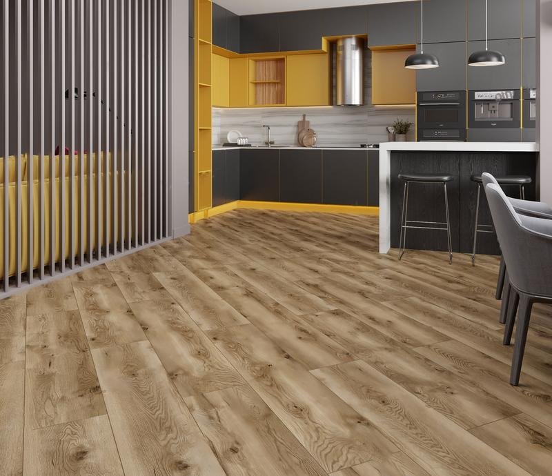 Водостойкий ламинат 33 класса Aqua Life XL в декоре Дуб Комо (Como Oak) светло-коричневого цвета от производителя Alpine Floor толщиной 8 мм, на замковой системе Megaloc Aqua Protect с 4V фаской по периметру. Синхронное тиснение в регистр с текстурой дуба практически неотличим от натуральной древесины. Напольное покрытие Aqua Life XL Дуб Комо (LF104-09) продаётся упаковками по 6 планок размером 280×1285 мм общей площадью 2,158 м2.