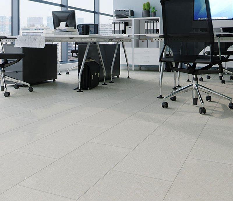 Минеральное виниловое покрытие 42 класса Aroq Stone Design в декоре Miami Concrete светло-серого цвета с фаской по периметру для укладки на клей, толщиной 2,5 мм от Польша производителя Arbiton. Дизайн выполнен под Бетонную плитку
