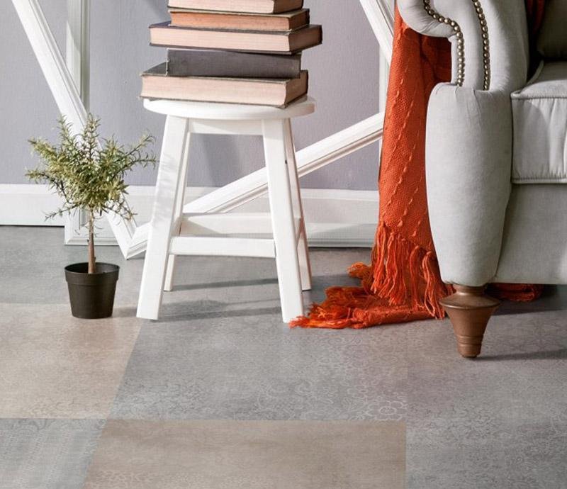 Креативный дизайнерский виниловый пол 34 класса Tarkett Art Vinyl Blues Helena с рисунком под плитку с фаской по периметру и с защитным слоем Extreme Protection. Возможность использовать поверх теплых полов.