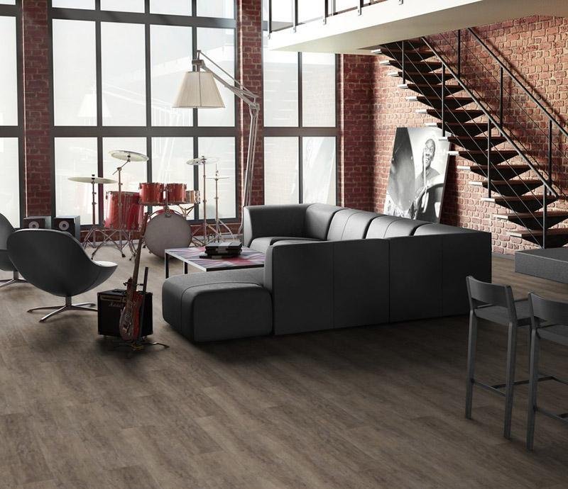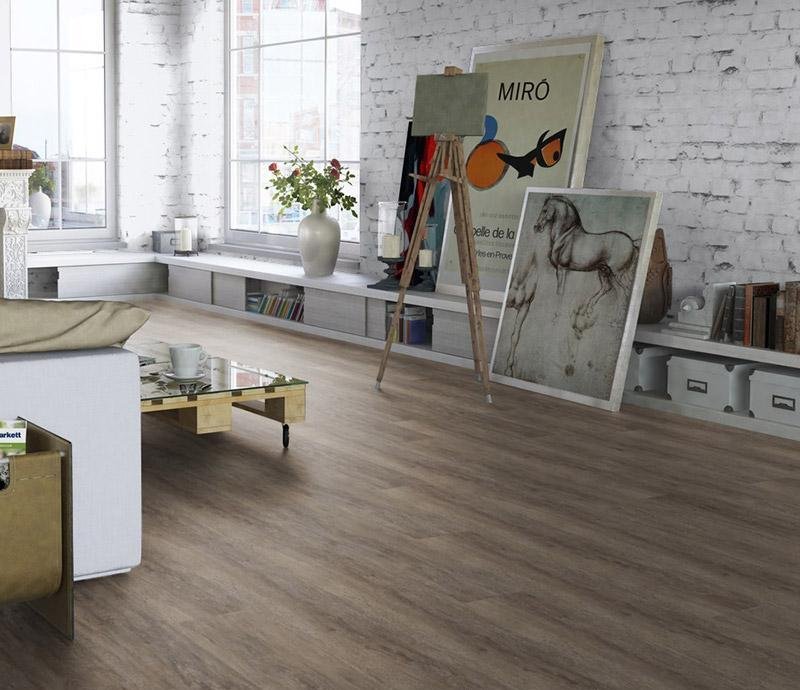 Влагостойкое виниловое покрытие 31 класса Progressive House в декоре Gabriel коричневого цвета с фаской по периметру на замковой системе Click от производителя Tarkett. Планки с текстурой дерева толщиной в 4,4 мм имеют дополнительный защитный слой Extreme Protection обеспечивающий надёжную защиту поверхности и лёгкость в уборке. Кроме того, защитный лак Extreme Protection обладает исключительно высокой механической прочностью и износостойкостью. Лак не имеет запаха, не токсичен и экологически безопасен. В качестве основы для коллекции Progressive House с замком используется прочный природный неорганический наполнитель Микромрамор, который получают путем измельчения и фрактации белого мрамора. Он придает покрытию дополнительную жесткость, стабильность линейных размеров, устойчивость к вмятинам и обуви.