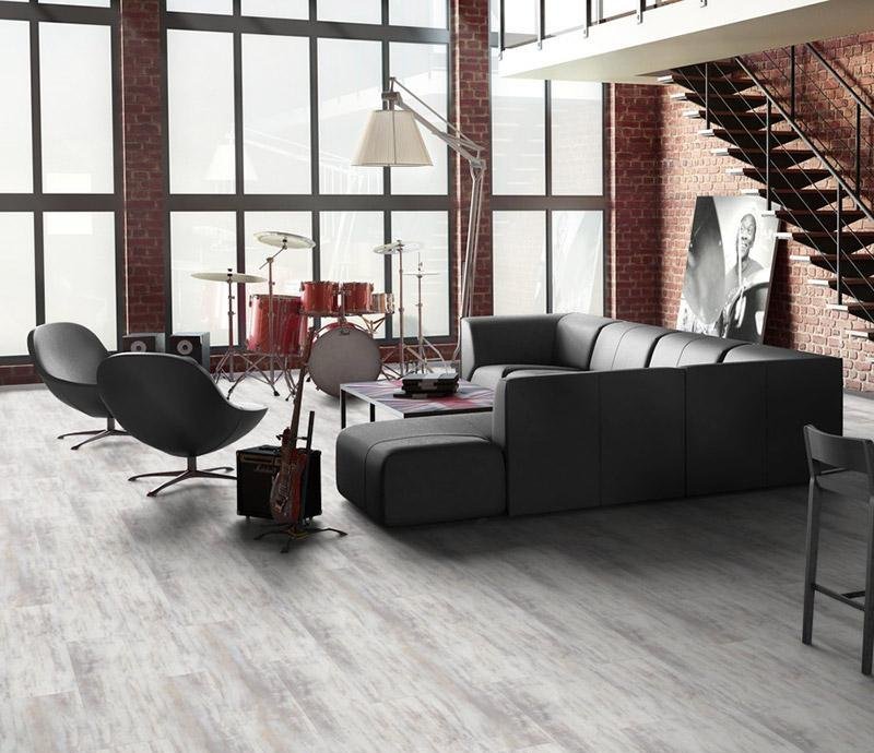 Влагостойкое виниловое покрытие 31 класса Progressive House в декоре Max бело-серого цвета с фаской по периметру на замковой системе Click от производителя Tarkett. Планки с текстурой дерева толщиной в 4,4 мм имеют дополнительный защитный слой Extreme Protection обеспечивающий надёжную защиту поверхности и лёгкость в уборке. Кроме того, защитный лак Extreme Protection обладает исключительно высокой механической прочностью и износостойкостью. Лак не имеет запаха, не токсичен и экологически безопасен. В качестве основы для коллекции Progressive House с замком используется прочный природный неорганический наполнитель Микромрамор, который получают путем измельчения и фрактации белого мрамора. Он придает покрытию дополнительную жесткость, стабильность линейных размеров, устойчивость к вмятинам и обуви.