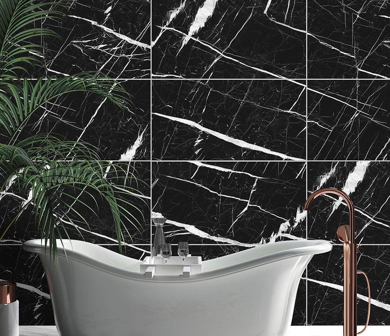 Виниловая SPC плитка 31 класса Asgard в однополосном декоре Хольда (Holda) черного цвета с фаской по периметру на замковой системе, толщиной 4 мм от производителя Noventis. Дизайн выполнен под мраморную плитку. Напольное покрытие Asgard Хольда (5001) продаётся упаковками по 10 планок размером 600×300×4 мм общей площадью 1.8 м².