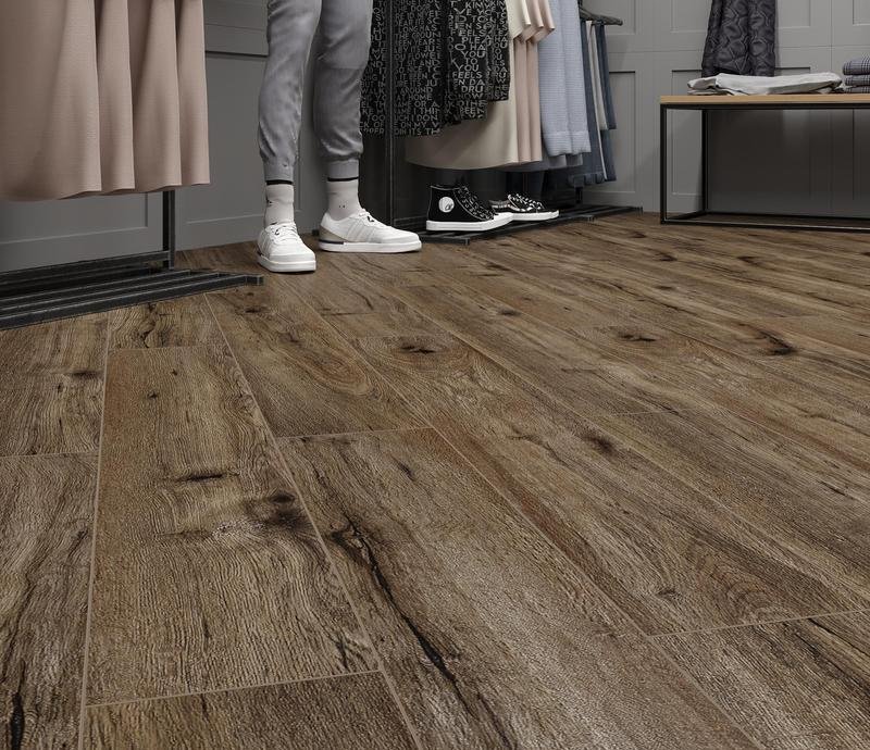 Водостойкий ламинат 33 класса Aura в однополосном декоре Дуб Турин тёмно-коричневого цвета от производителя Alpine Floor толщиной 8 мм, на замковой системе Click System с 4V фаской по периметру. Синхронное тиснение в регистр с текстурой дуба. Напольное покрытие Aura Дуб Турин (LF100-11) продаётся упаковками по 10 планок размером 1218×198 мм общей площадью 2,4116 м2.