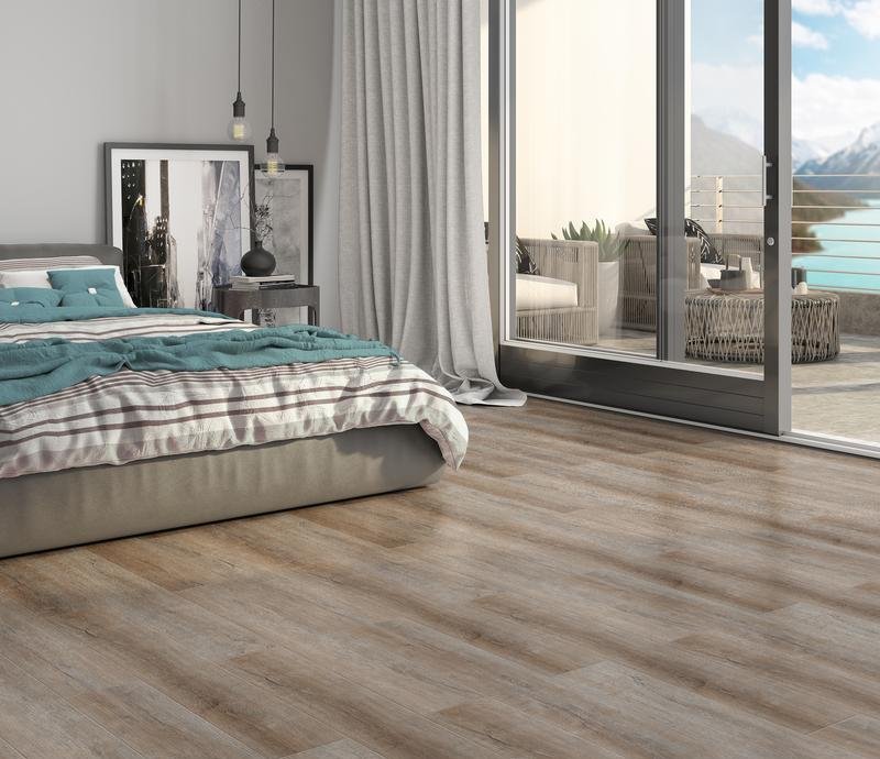 Влагостойкое виниловое покрытие 42 класса Avalon в однополосном декоре Дуб кельтский (Celtic oak) светло-коричневого цвета с фаской по периметру для замковой укладки, толщиной 3.5 мм от Российского производителя Noventis. Дизайн выполнен под дерево
