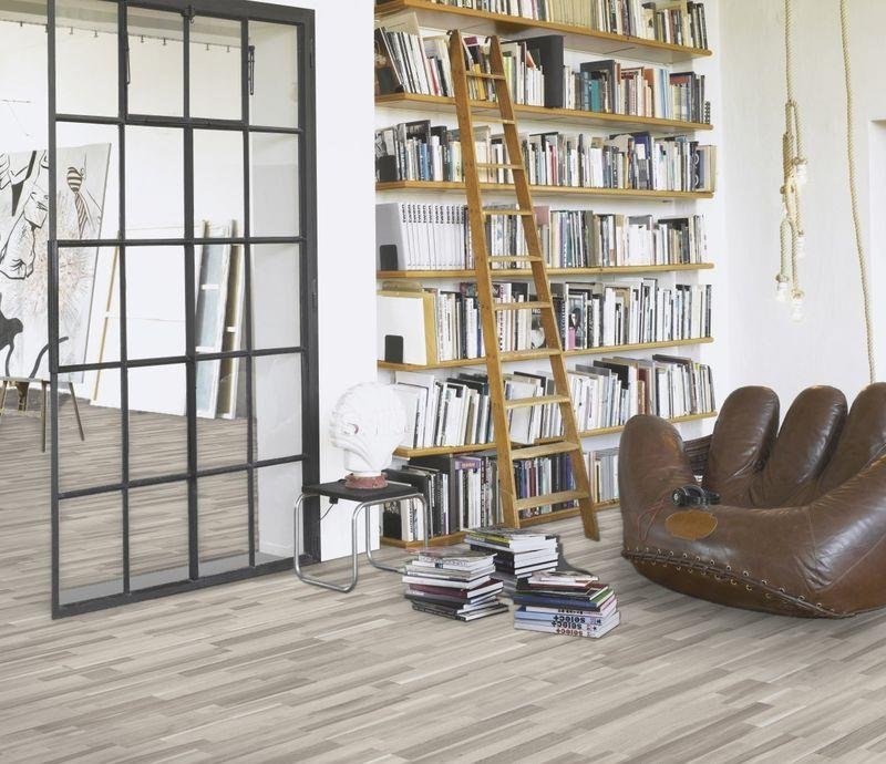 Однополосный ламинат 31 класса серии Basic в декоре Акация серая (Acacia Grey) серо-телесного цвета от производителя Parador толщиной 7 мм, на замковой системе Safe-Lock PRO без фаски. Полуматовая поверхность с текстурой акации. Специальная основная плита Aqua-Proof позволяет использовать настил даже во влажных помещениях на систему теплых полов.