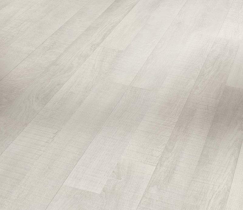 Однополосный ламинат 31 класса серии Basic в декоре Дуб грубопиленый белый (Rough Sawn White Oak) белого цвета от производителя Parador толщиной 7 мм, на замковой системе Safe-Lock PRO без фаски. Полуматовая поверхность с текстурой дуба. Специальная основная плита Aqua-Proof позволяет использовать настил даже во влажных помещениях на систему теплых полов.