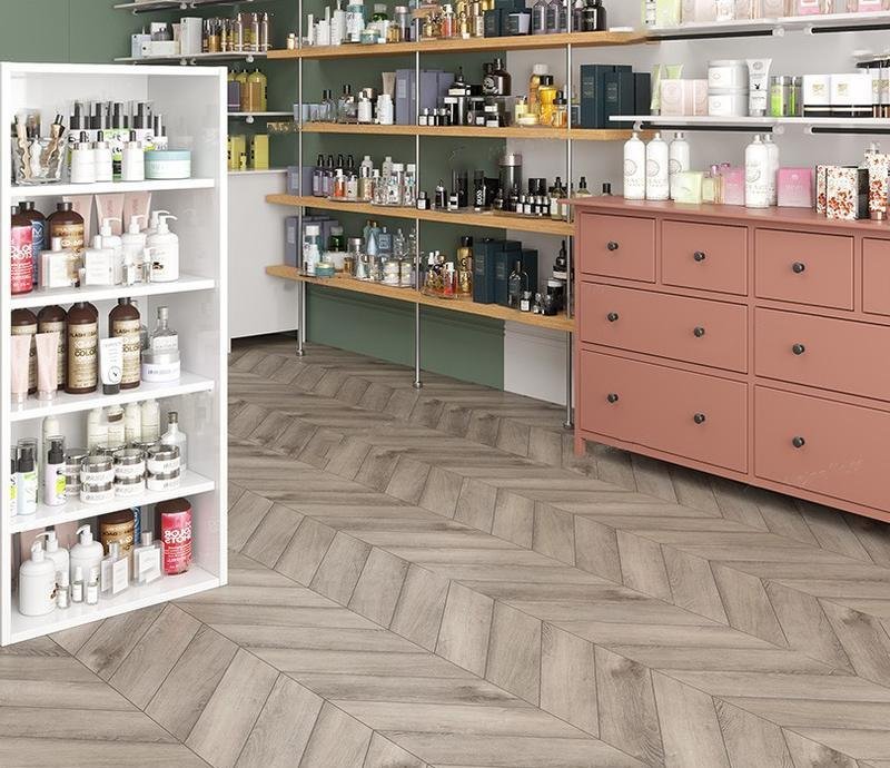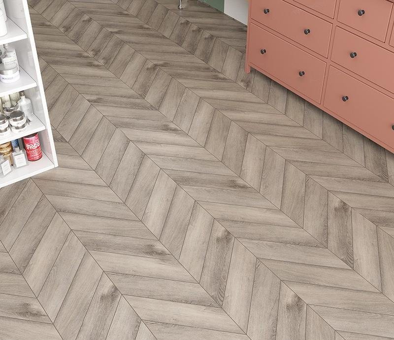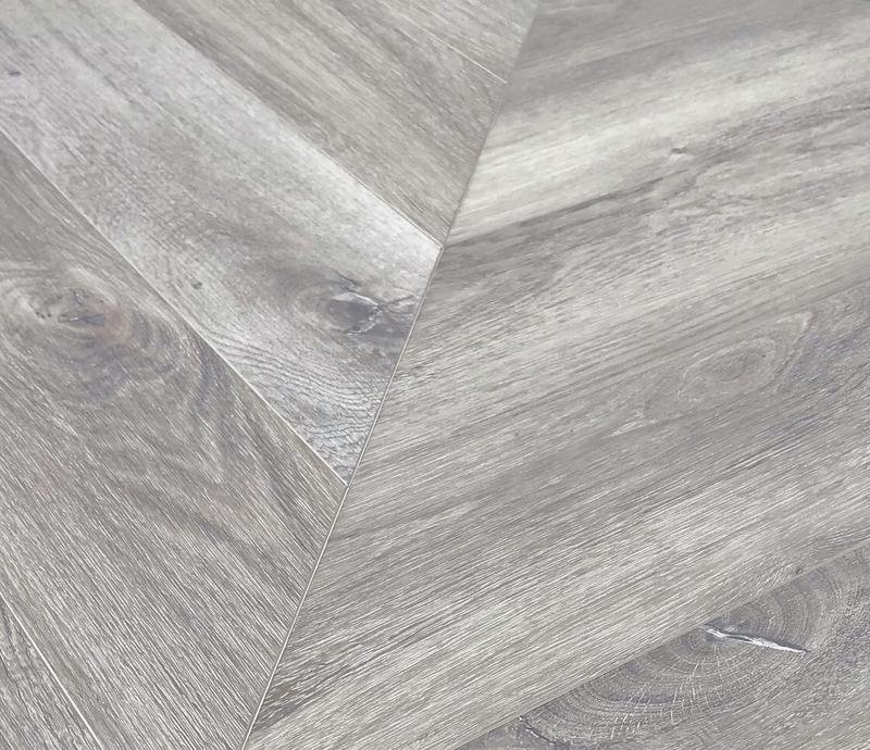 Виниловый паркет на SPC основе 43 класса Chevron Alpine в декоре Дуб Исида (Isis Oak) светло-серого цвета с 4V фаской на замковой системе, толщиной 5 мм от производителя Alpine Floor. Дизайн под французскую ёлку. Напольное покрытие Chevron Alpine Дуб Исида (ECO 18-8) продаётся упаковками по 22 планки (А+В) форматом 127×600 мм общей площадью 1,6764 м². Предоставляется гарантия производителя Alpine Floor в 20 лет.