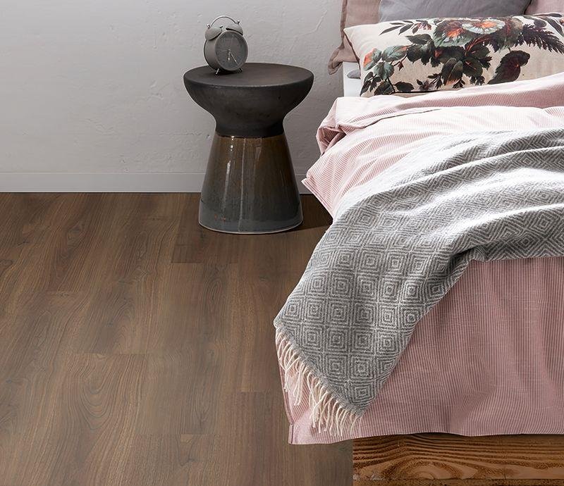 Однополосный ламинат 33 класса Classic 8/33 4V в декоре ореха Бедолло тёмный (Bedollo Dark Walnut) коричневого цвета от производителя Egger толщиной 8 мм, на замковой системе Clic it с V фаской по периметру. Полуматовая поверхность имеет реалистичную текстуру ореха. Орех Бедолло тёмный по-прежнему являясь трендом номер один среди древесных декоров. Имитирующий естественную текстуру древесины или древесный рисунок с трещинами и сучьями, этот декор смотрится аутентично, но всегда абсолютно по-разному, и создает интересные контрасты.