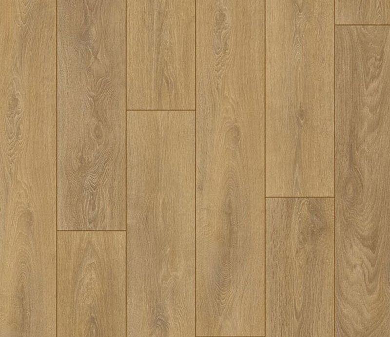 Однополосный ламинат 32 класса Ter Hürne Classic Line в декоре Дуб коричневый на замковой системе CLICKitEASY. Планки толщиной 8 мм с фаской по периметру созданы на базе влагостойкой HDF плиты с восковой пропиткой AQUA PROTECTED. Напольное покрытие Classic Line Oak October Brown (1101020827) продаётся упаковками по 9 планок размером 1285×192×8 мм общей площадью 2.22 м². Гарантия на весь ламинат Ter Hurne составляет 20 лет при использовании в жилых помещениях.