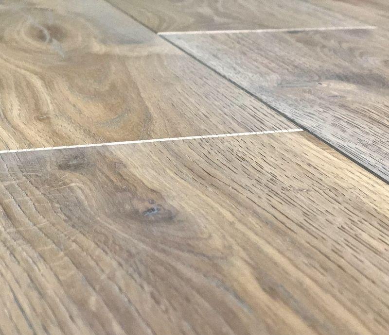 V-образная фаска по периметру доски выразительно выделяет каждую планку, подчеркивая натуральность напольного покрытия