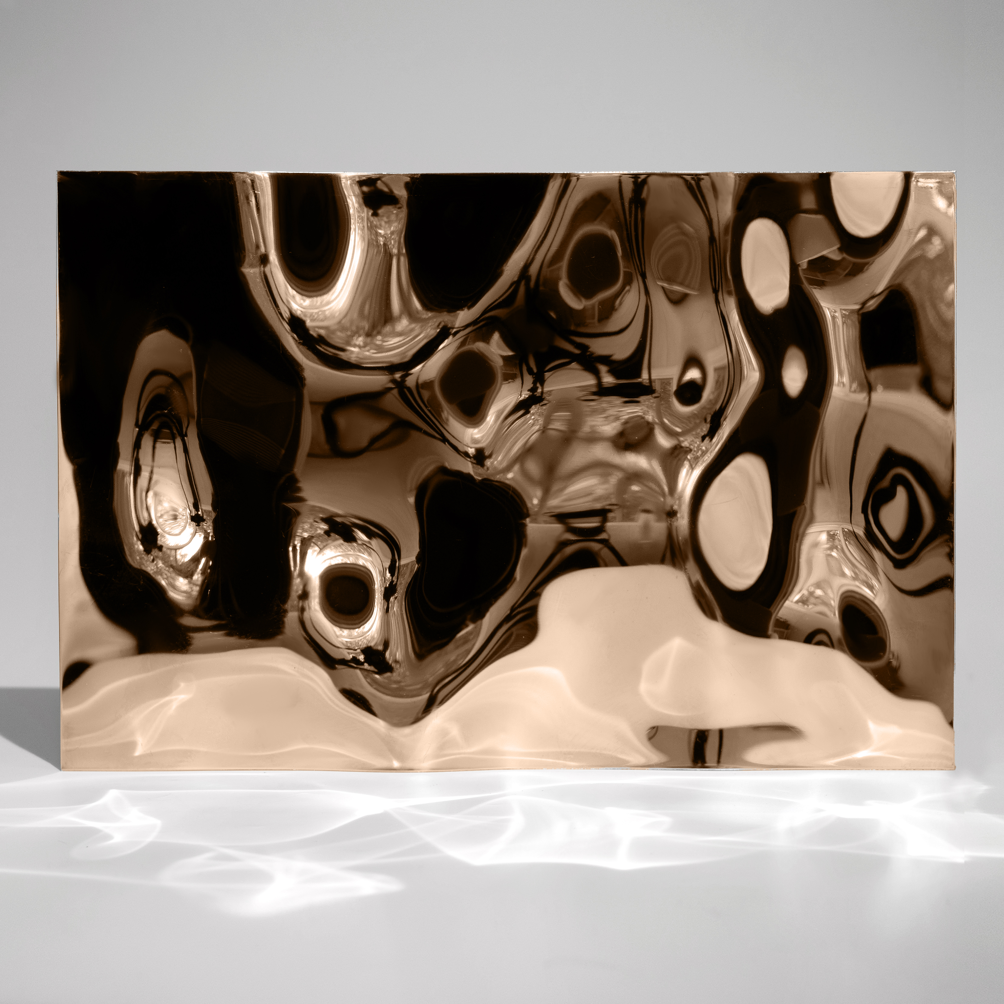 Нержавеющая декоративная сталь  — это настоящее произведение искусства. Эффект водной ряби и переливы цвета мгновенно захватывают взгляд. Зеркальная поверхность создает ощущение движения — идеально для любых интерьеров, в которых важны энергия, ритм и выразительность. Материал подойдет как для оформления арт-пространств, так и для облицовки стен, колонн и стоек ресепшн в холлах.