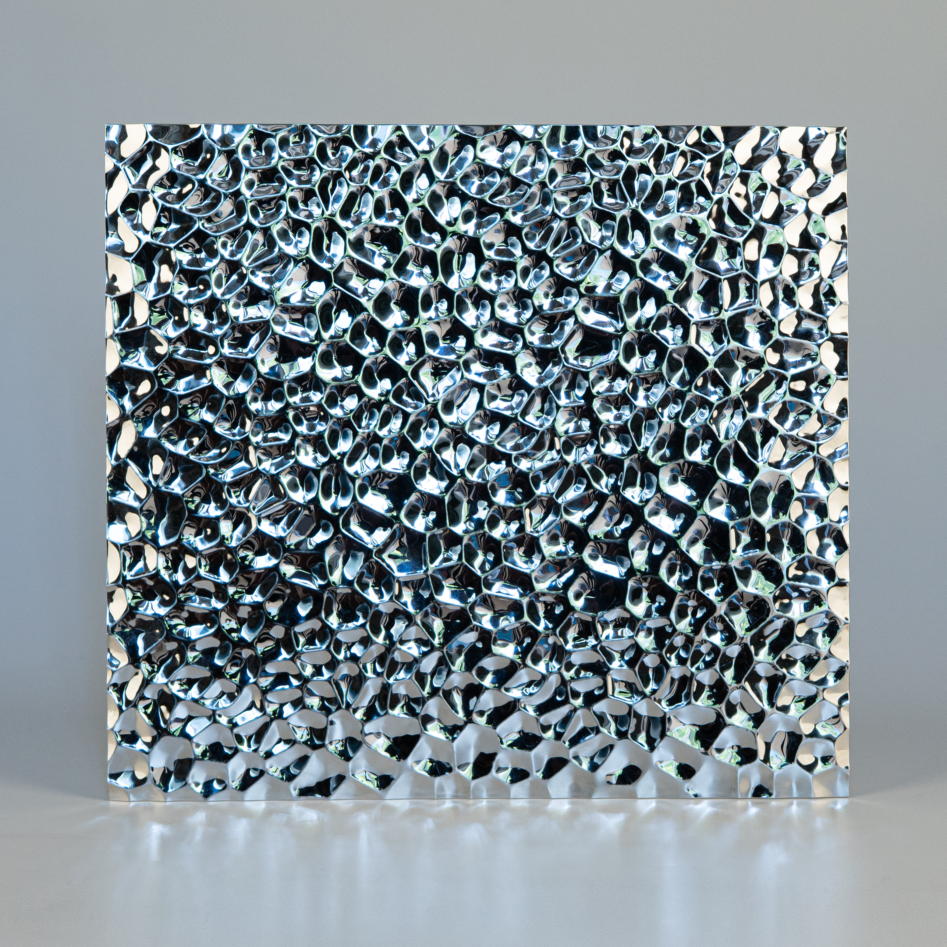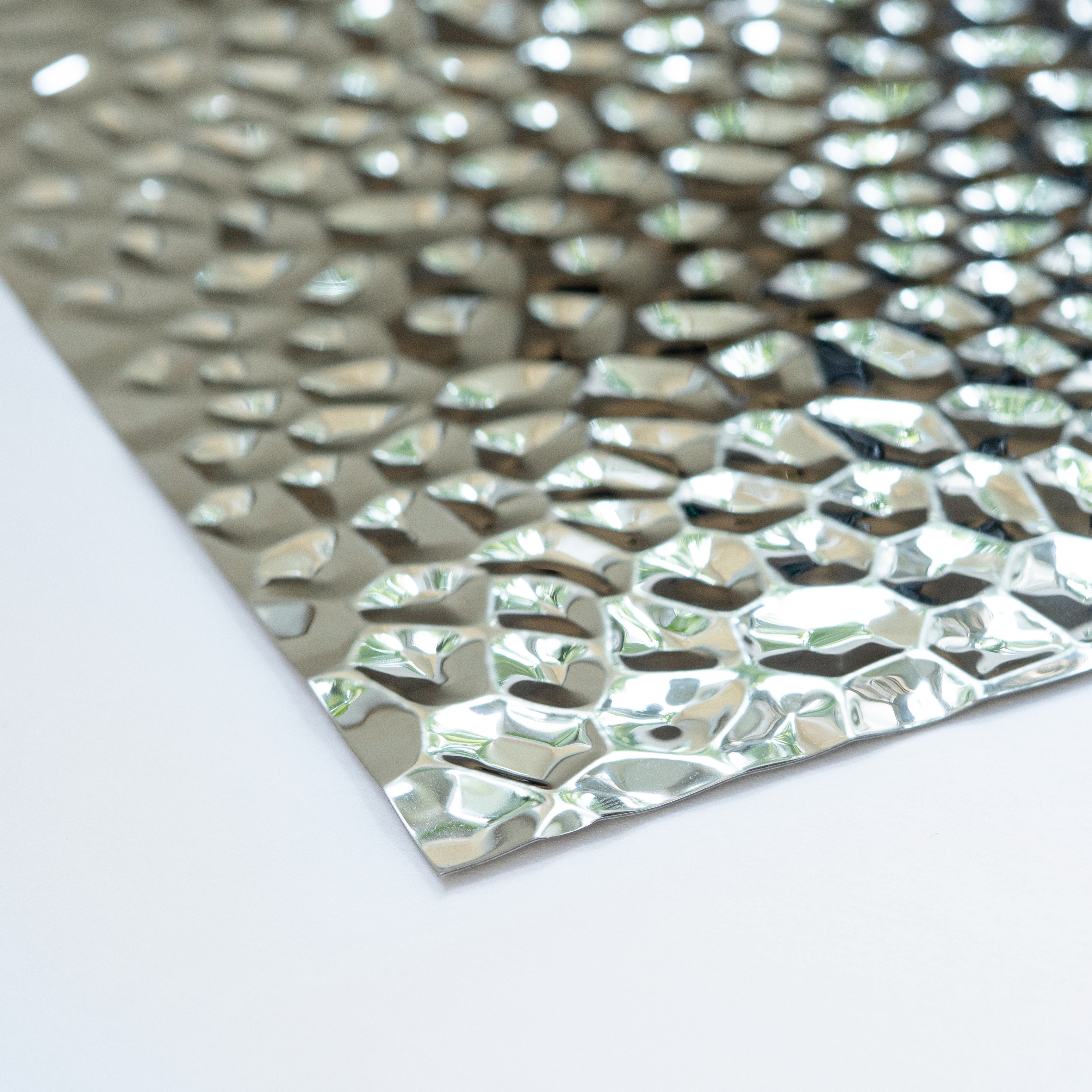 Нержавеющая декоративная сталь  — это настоящее произведение искусства. Эффект водной ряби и переливы цвета мгновенно захватывают взгляд. Зеркальная поверхность создает ощущение движения — идеально для любых интерьеров, в которых важны энергия, ритм и выразительность. Материал подойдет как для оформления арт-пространств, так и для облицовки стен, колонн и стоек ресепшн в холлах.