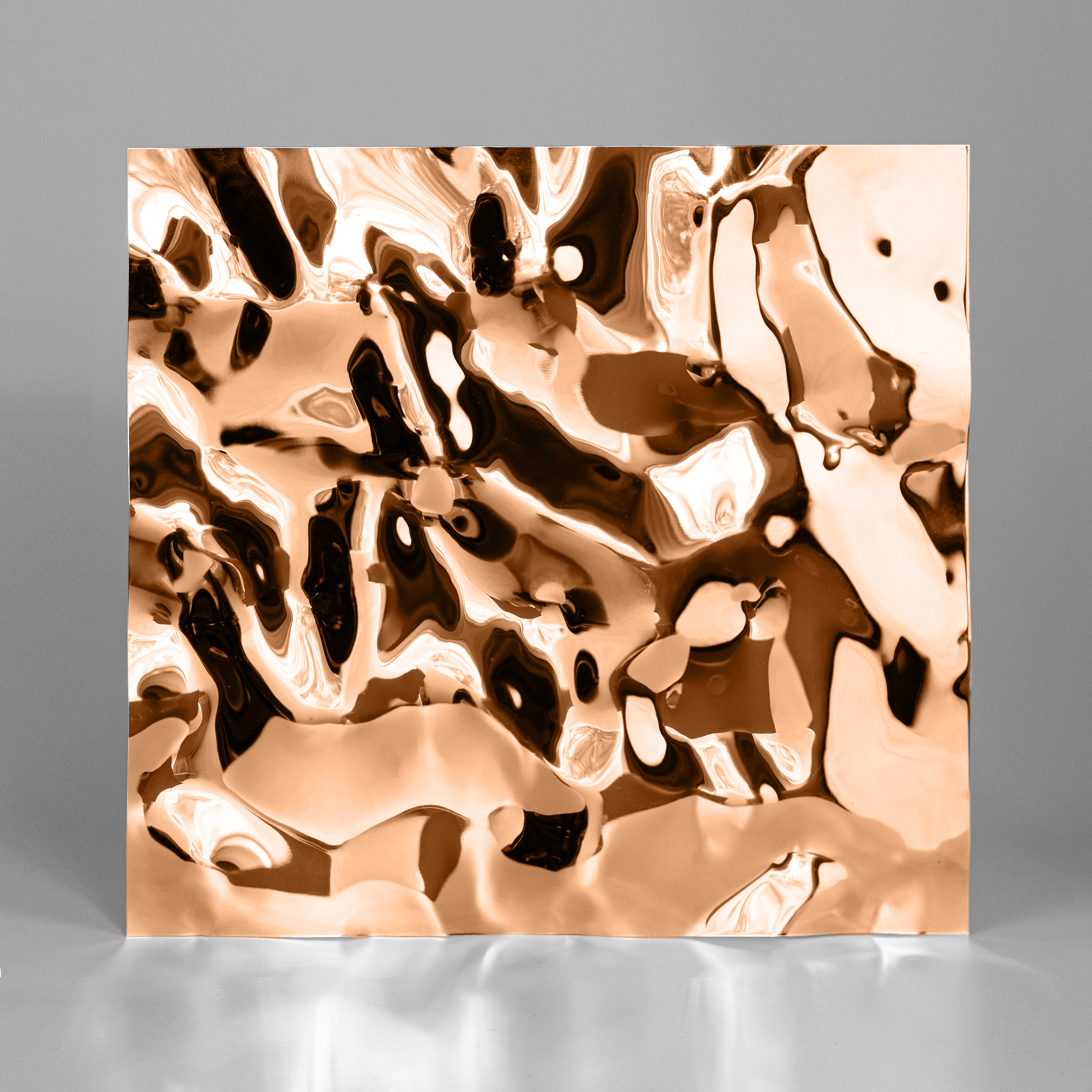 Нержавеющая декоративная сталь  — это настоящее произведение искусства. Эффект водной ряби и переливы цвета мгновенно захватывают взгляд. Зеркальная поверхность создает ощущение движения — идеально для любых интерьеров, в которых важны энергия, ритм и выразительность. Материал подойдет как для оформления арт-пространств, так и для облицовки стен, колонн и стоек ресепшн в холлах.