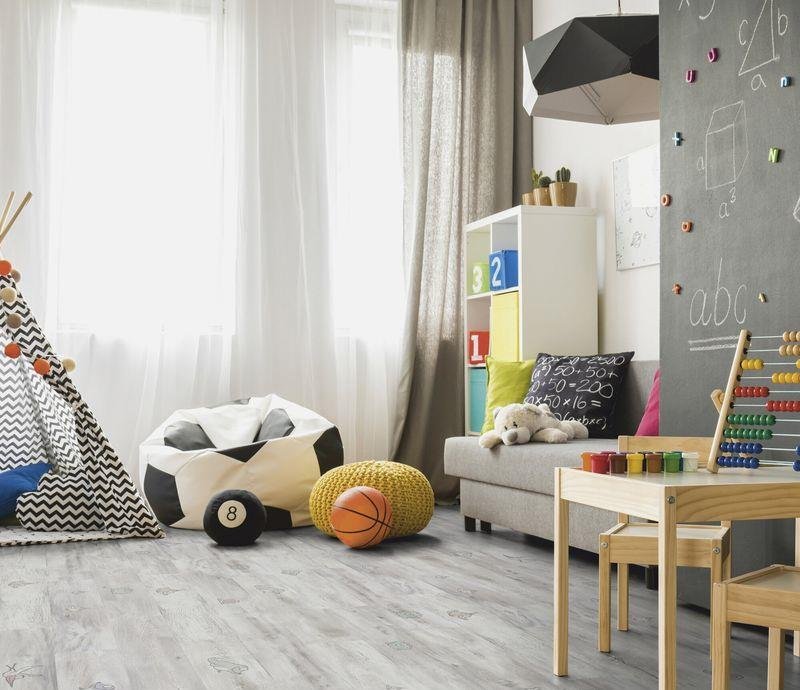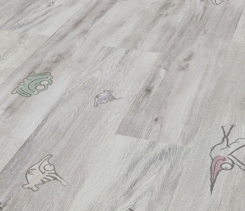Светло-серый однополосный ламинат 32 класса с матовой поверхностью под дерево. Планки декора D 6406 Смайл снабжены замковой системой EXPRESS CLICK и не имеют фаски. Толщина 8 мм. Гарантия 25 лет.