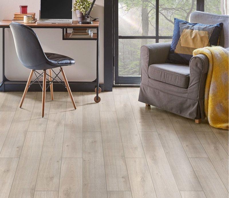 Толстый ламинат 33 класса Dynasty в однополосном декоре Стюарт (Stuart) серо-телесного цвета от производителя Tarkett, на замковой системе TC-lock с V фаской по периметру. Толщина планки в 12 мм гарантирует большую прочность и стабильность доски. Полуматовая поверхность глубокого тиснения в регистре максимально точно передает текстуру волокон дуба. Дополнительная защита от влаги обеспечивается специальной технологией обработки «Tech3S». Срок службы в общественных помещениях - 25 лет. Возможна укладка на полы с подогревом до 27°C. Напольное покрытие Dynasty Стюарт (504442006) продаётся упаковками по 5 планок размером 159×1292 мм общей площадью 1.027 м².