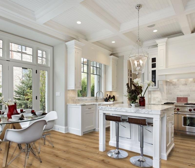 Однополосный ламинат 32 класса Eventum в декоре Дуб Марвел (Marvel Oak) светло-коричневого цвета от производителя Kronostar толщиной 8 мм. Планки на замковой системе 5G с фаской по периметру. Широкие доски с выразительной текстурой дуба визуально расширяют пространство в помещении. V-образные фаски с четырёх сторон придают особый колорит покрытию и делают его неотличимым от деревянного массива.