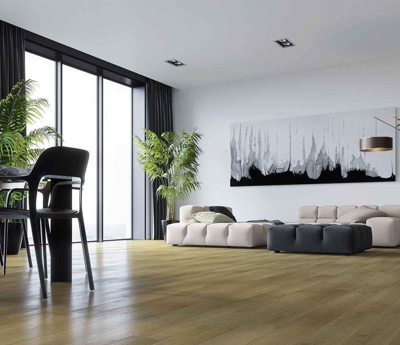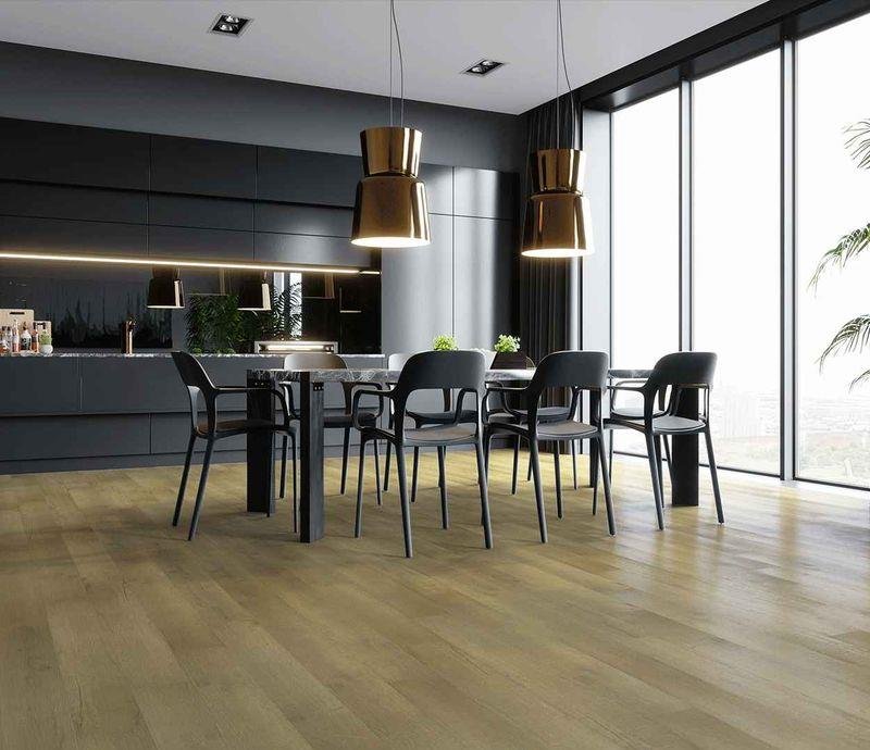 Влагостойкое виниловое покрытие 32 класса Natural в декоре Дуб Янтарный пляж (Amber Beach Oak) светло-коричневого цвета с фаской по периметру на замковой системе, толщиной 3,5 мм от производителя Home Expert. Дизайн выполнен под дерево Кварцевый ламинат Home Expert 0-002 Дуб Янтарный пляж имеет 100% влагостойкость и подходит для укладки на систему тёплых полов во влажных помещениях: ванна, кухня прихожая и во всех других комнатах. Гарантия на покрытие 25 лет.