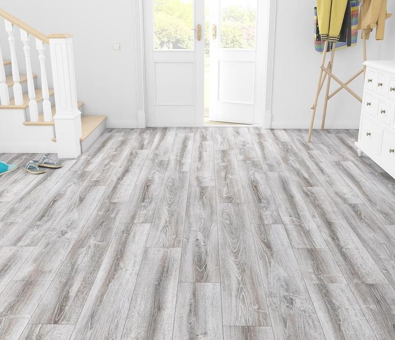 Однополосный ламинат 33 класса, из коллекции Floorpan Black в декоре Сосна Асахи (Asahi Pine) серого цвета от производителя Kastamonu. Доски толщиной 8 мм, на замковой системе Uniclic с V фаской по периметру, позволяют производить укладку плавающим методом на систему обогреваемых полов. Полуматовая поверхность ламината имитирует доску в рустикальной структуре с равномерным оттенком. Напольное покрытие Floorpan Black Сосна Асахи (FP857) продаётся упаковками по 8 планок в формате 195×1380 мм общей площадью 2.153 м². Предоставляется гарантия производителя в 25 лет для жилых помещений и 15 лет для коммерческих.
