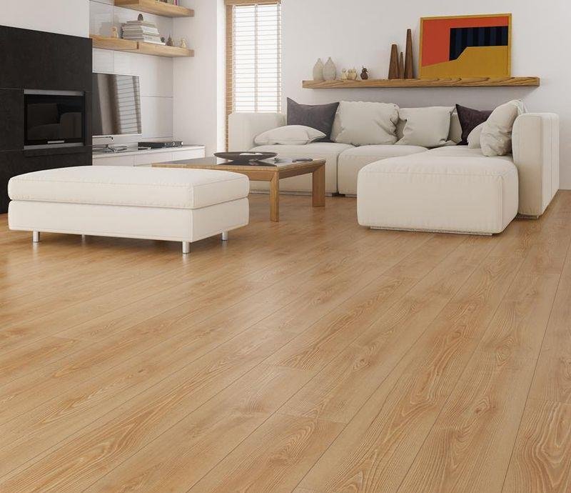Однополосный ламинат 33 класса Gloria Camsan в декоре Аден (Aden) карамельного цвета от производителя Westerhof толщиной 12 мм, на замковой системе Valinge click с V фаской по периметру. поверхность с текстурой дуба. Напольное покрытие Gloria Camsan Аден (6004) продаётся упаковками по 6 планок размером 190×1380 мм общей площадью 1,58 м².