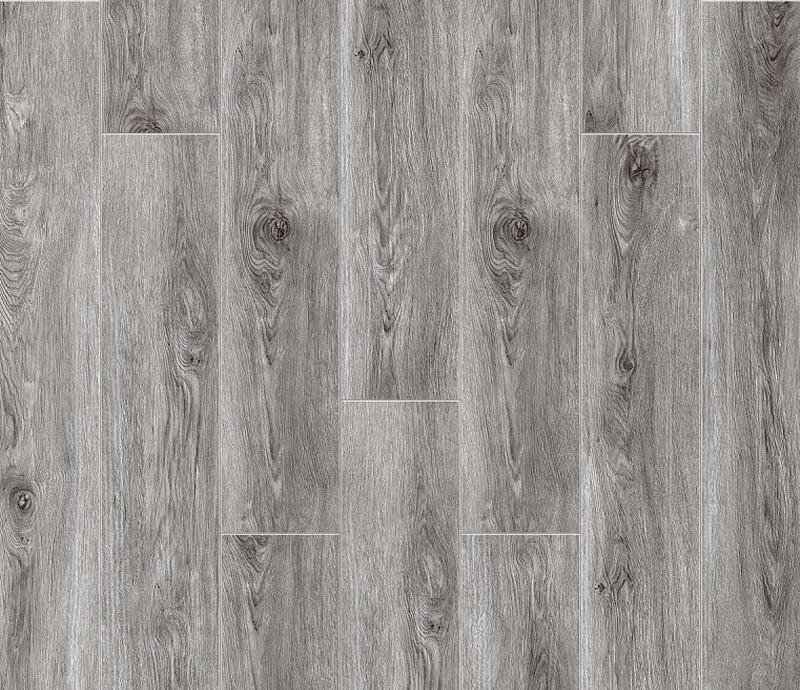 Влагостойкое виниловое покрытие 43 класса Grand Canyon в однополосном декоре Дуб Мохаве (Mojave Oak) серого цвета с фаской по периметру для замковой укладки, толщиной 4 мм от Российского производителя Noventis. Дизайн выполнен под дерево