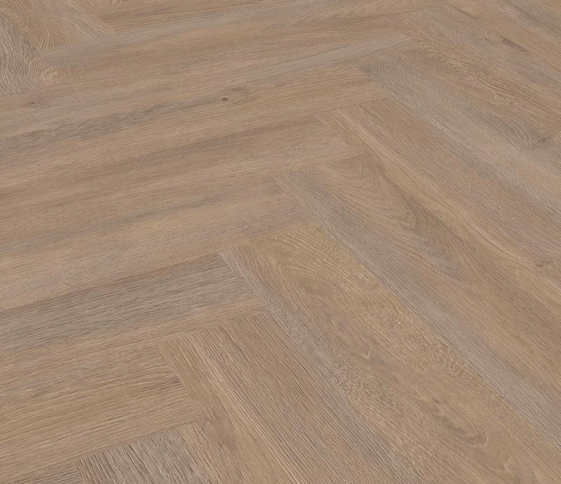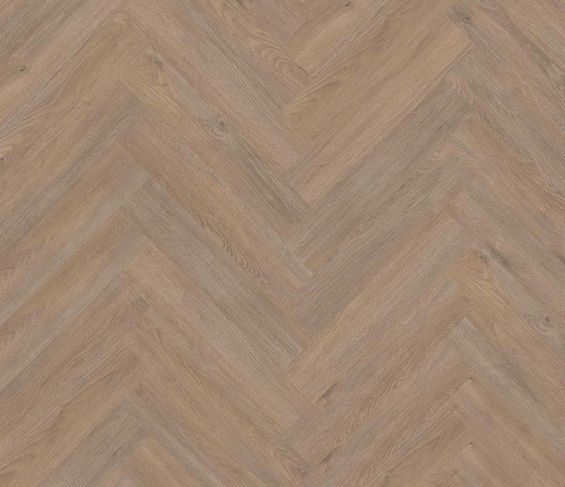 Ламинат под Английскую ёлочку 33 класса Herringbone Edition в декоре Дуб Форт (Oak Fort) коричнево-серого цвета от производителя Ter Hurne толщиной 10 мм, на замковой системе SmartConnect HB, 5G с фаской по периметру. Напольное покрытие Herringbone Edition Дуб Форт (1101021809) продаётся упаковками по 10 планок размером 133×665 мм общей площадью 0,884 м².