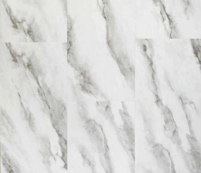 Влагостойкая виниловая SPC плитка 42 класса Jersey в однополосном декоре Мрамор Верде (Verde Marble) бело-чёрного цвета с фаской по периметру для плавающего способа укладки, толщиной 4,5 мм от производителя ROYCE. Дизайн выполнен под белый мрамор Напольное покрытие Jersey Мрамор Верде (J409) продаётся упаковками по 8 планок размером 305×610 мм общей площадью 1.488 м².