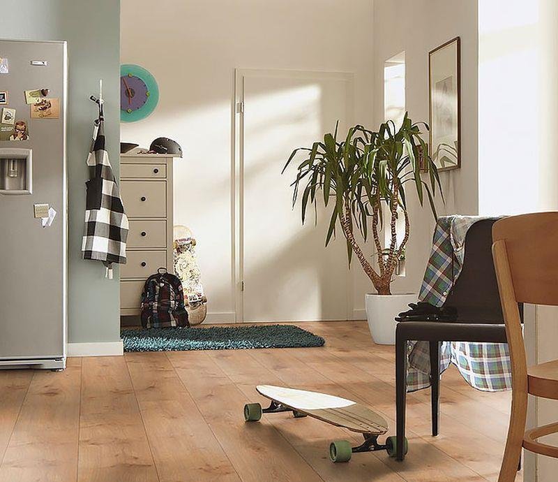 Однополосный ламинат 32 класса LL 250 в декоре дуба Дакар (Dakar Oak) светло-коричневого цвета от производителя Meister толщиной 10 мм, на замковой системе Masterclick Plus с V фаской по периметру. Полуматовая поверхность с текстурой дуба. Коллекция LL 250 имеет пропитку AquaStop и водостойким средним слоем AquaSafe+, что делает его устойчивым к влаге в течение 24 часов, согласно NALFA. Это делает пол пригодным для использования в ванных комнатах. Устойчивая к царапинам поверхность Diamond Pro и антистатическая декоративная бумага дополняют технические преимущества ламината.