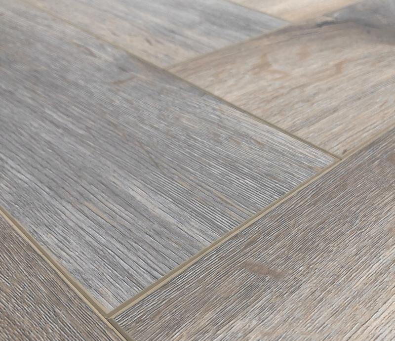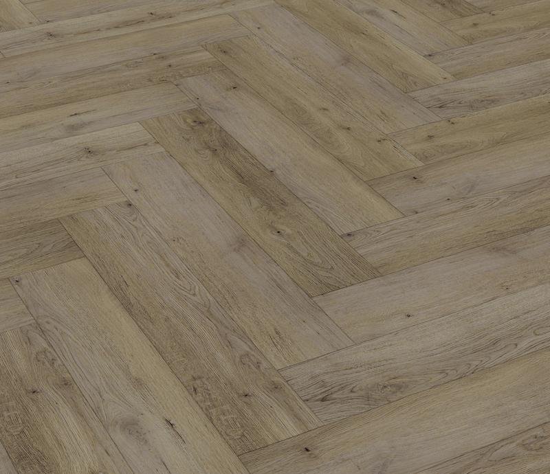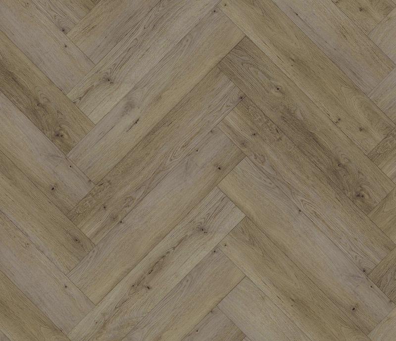 SPC ламинат 43 класса под английскую ёлочку London в декоре Ковентри коричнево-серого цвета от производителя Damy Floor толщиной 4 мм, на замковой системе с V фаской по периметру. Реалистичная поверхность с текстурой дерева. Виниловое покрытие London Ковентри (190707EL-01) продаётся упаковками по 14 планок размером 615×123 мм общей площадью 1,059 м².