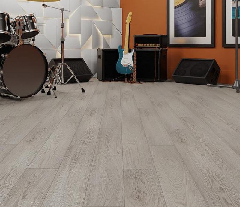 Однополосный ламинат 33 класса из флагманской линейки NanoClick в декоре Хаггинс (Huggins) светло-серого цвета от Российского производителя Kastamonu. Доски толщиной 10 мм, на замковой системе Uniclic наделены V-образной фаской по периметру. Полуматовая поверхность с текстурой дуба, максимально точно воспроизводит рисунок древесины. Высокая износоустойчивость, влагостойкость и больший срок службы подтверждается длительной гарантией. Напольное покрытие NanoClick Хаггинс (NC63) продаётся упаковками по 9 планок размером 159×1380 мм общей площадью 1,975 м² в одной пачке.