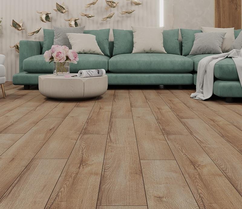 Однополосный ламинат 33 класса из флагманской линейки NanoClick в декоре Саган (Sagan) светло-коричневого цвета от Российского производителя Kastamonu. Доски толщиной 10 мм, на замковой системе Uniclic наделены V-образной фаской по периметру. Полуматовая поверхность с текстурой дуба, максимально точно воспроизводит рисунок древесины. Высокая износоустойчивость, влагостойкость и больший срок службы подтверждается длительной гарантией. Напольное покрытие NanoClick Саган (NC66) продаётся упаковками по 9 планок размером 159×1380 мм общей площадью 1,975 м² в одной пачке.