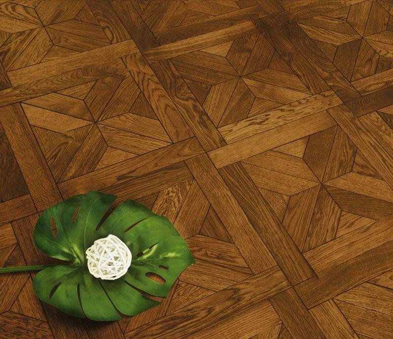 Узор «Верона», представляет из себя набор элементов, каждый из которых имеет микро-фаску по периметру, тем самым имитируя штучный паркет и приобретает объём. Верхний слой из натурального дуба, толщиной 4 мм, подвергается специальной обработке «Браширование» подчёркивая текстуру древесины. Для тонировки и финишного покрытия используется износостойкий, экологически чистый тонирующий состав коньячного цвета и покрывается УФ-маслом.