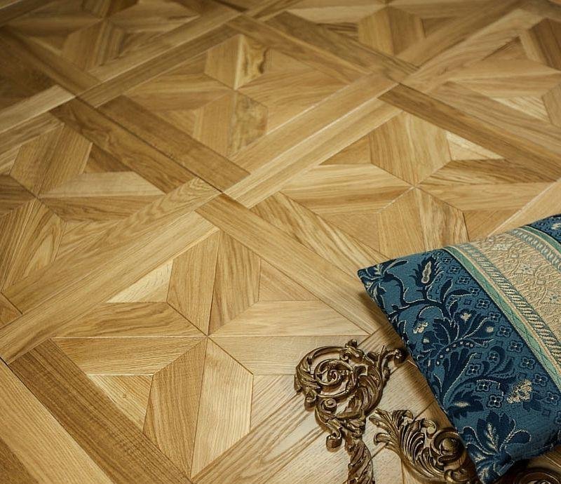 Узор «Верона», представляет из себя набор элементов, каждый из которых имеет микро-фаску по периметру, тем самым имитируя штучный паркет и приобретает объём. Верхний слой из натурального дуба, толщиной 4 мм, подвергается специальной обработке «Браширование» подчёркивая текстуру древесины. Для тонировки и финишного покрытия используется износостойкий, экологически чистый тонирующий состав карамельного цвета и покрывается УФ-маслом.