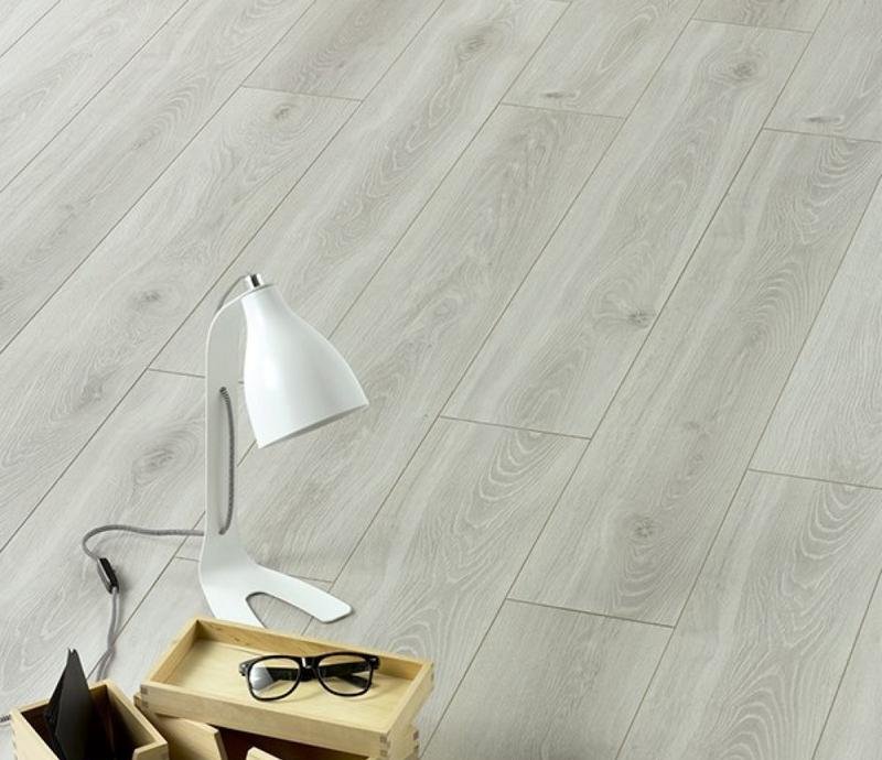 Светло-серый однополосный ламинат 33 класса в декоре Дуб Серый с V-образной фаской по периметру. Французский ламинат снабжен замковой системой 5G. В упаковке 9 планок размером 1286х192х8 мм. площадью 2,22 м². Поверхность полуматовая. Гарантия производителя на ламинат Alsafloor Osmoze O448 Дуб Серый 35 лет, при условии соблюдения правил эксплуатации. Можно укладывать на систему теплых полов.