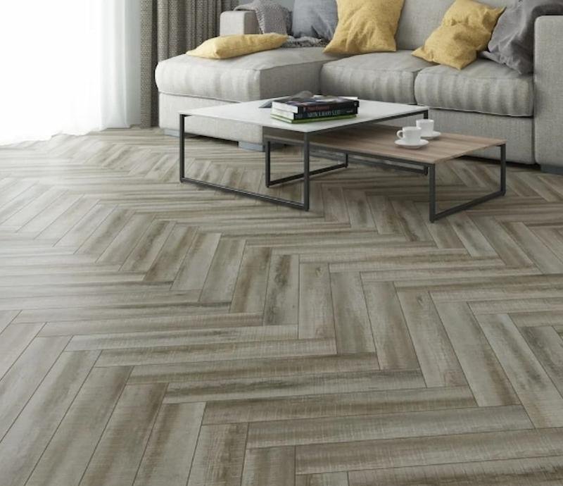 Ламинат 34 класса Palazzo в декоре 812A Шато Антик под ёлочку серого цвета от производителя Floorwood толщиной 8 мм, на замковой системе. Полуматовая поверхность с текстурой дуба. Напольное покрытие Palazzo Шато Антик продаётся упаковками по 6 планок размером 101×606 мм общей площадью 2,448 м².