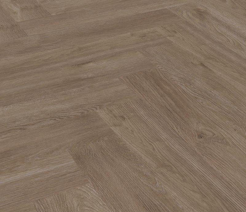 Виниловый пол под английскую ёлочку 42 класса Parquet Click в декоре Kampena (Кампена) бежево-коричневого цвета с фаской по периметру для плавающего и клеевого способа укладки, толщиной 4,5 мм от производителя EvoFloor.