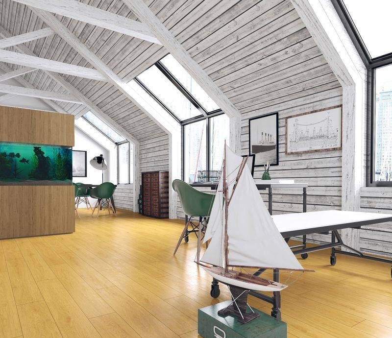 Однополосный ламинат 32 класса Platinium Marine в декоре Дуб Каспийский (Caspian Oak) золотистого цвета от производителя Kronopol толщиной 10 мм, на замковой системе Express Clic-System с V-образной фаской по периметру. Полуматовая поверхность с текстурой дуба. Декор ламината имеет структуру WA, имитирующую дерево с легким брашированием вдоль волокон.