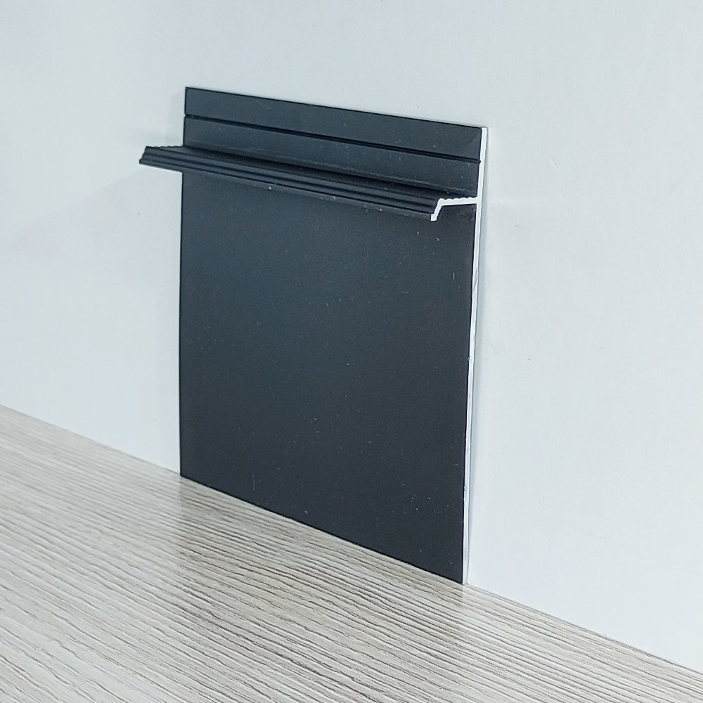 Основное отличие от большинства плинтусов данное решение не выступает относительно стены, что позволяет легко разместить мебель в помещении и уменьшить скопление пыли. Монтаж осуществляется с помощью строительного клея и крепления саморезами по верхней части. Поверх плинтуса монтируются панели из гипсокартона или выполняется штукатурка стен. В качестве декоративной планки можно использовать любой материал, в зависимости от требований к дизайну помещения: МДФ, ламинат, алюминий и т. п.
