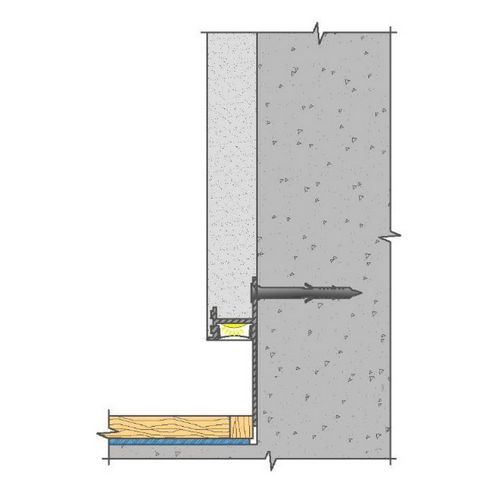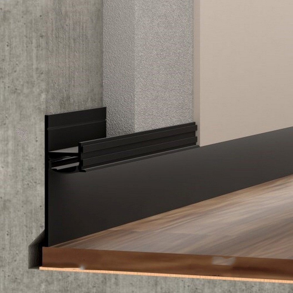 Плинтус скрытого монтажа Pro Design из алюминия встраиваемый в стену, имеет большое количество применения, позволяет создать эффект парящей стены.