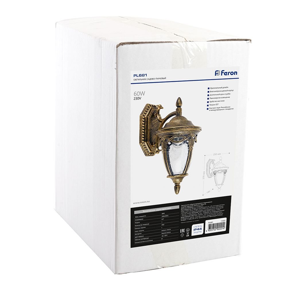 Интересная модель 11692 от российской компании Feron относится к коллекции Будапешт. Уличный настенный светильник Feron Будапешт PL681 11692 с овальными плафонами осветит помещение площадью 4 кв. м. Производитель Feron рекомендует использовать для устройства лампы накаливания с цоколем E27 и мощностью 60 W. Прибор произведен с использованием материалов: стекло и металл. Основным цветом товара является Золотой и Прозрачный. Уличный настенный светильник PL681 11692 продается по цене 5467 руб. Торопитесь сделать заказ в интернет-магазине Top Otdelka.
