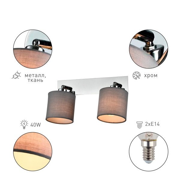Невероятная модель 7058-702 со встроенным выключателем от итальянской компании Rivoli относится к коллекции Perlita и отлично подойдет для установки на потолок, на стену в гостиной, оформленной в стиле модерн. Спот Rivoli Perlita 7058-702 Б0055009 с цилиндрическими плафонами осветит помещение площадью 6 кв. м. Производитель Rivoli рекомендует использовать для устройства светодиодные лампы с цоколем E14 и мощностью 40 W. Прибор произведен с использованием материалов: металл и ткань и может использоваться для натяжного потолка. Основным цветом товара является Хромовый, Серебристо-стальной и Серый. Торопитесь сделать заказ в интернет-магазине Top Otdelka.
