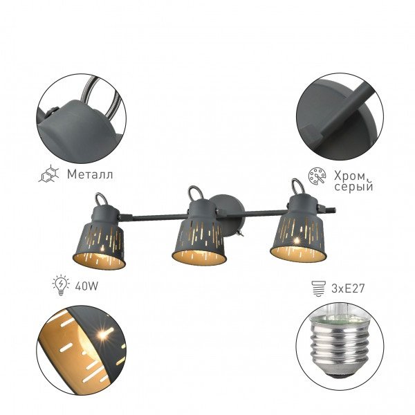 Исключительная модель 7059-703 со встроенным выключателем от итальянской компании Rivoli относится к коллекции Kalma и отлично подойдет для установки на потолок, на стену в гостиной, оформленной в стиле модерн. Спот Rivoli Kalma 7059-703 Б0055014 с трапециевидными плафонами осветит помещение площадью 9 кв. м. Производитель Rivoli рекомендует использовать для устройства светодиодные лампы с цоколем E27 и мощностью 40 W. Прибор произведен с использованием материала: металл и может использоваться для натяжного потолка. Основным цветом товара является Серый. Спот 7059-703 Б0055014 продается по цене 7751 руб. Торопитесь сделать заказ в интернет-магазине Top Otdelka.