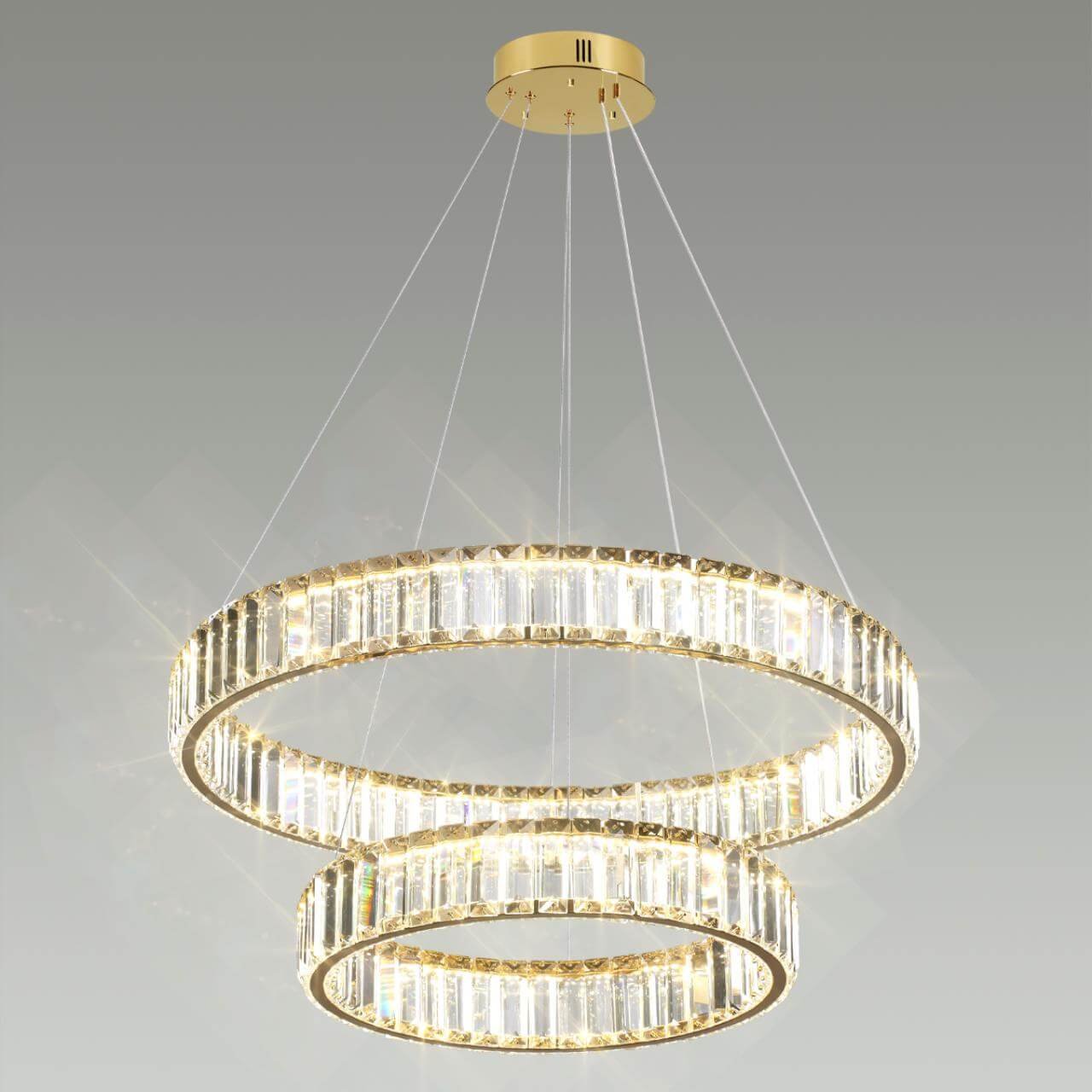 Изысканная модель 5015/60L от итальянской компании Odeon Light относится к коллекции Vekia и отлично подойдет для установки на потолок в гостиной, оформленной в стиле модерн. Подвесной светодиодный светильник Odeon Light Vekia 5015/60L с цилиндрическими плафонами осветит помещение площадью 24 кв. м. холодным светом. Осветительный элемент встроен в конструкцию и не требует приобретения дополнительных лампочек. Прибор произведен с использованием материалов: хрусталь и металл и может использоваться для натяжного потолка. Основным цветом товара является Золотой и Прозрачный. Подвесной светодиодный светильник 5015/60L продается по цене 47340 руб. Торопитесь сделать заказ в интернет-магазине Top Otdelka.