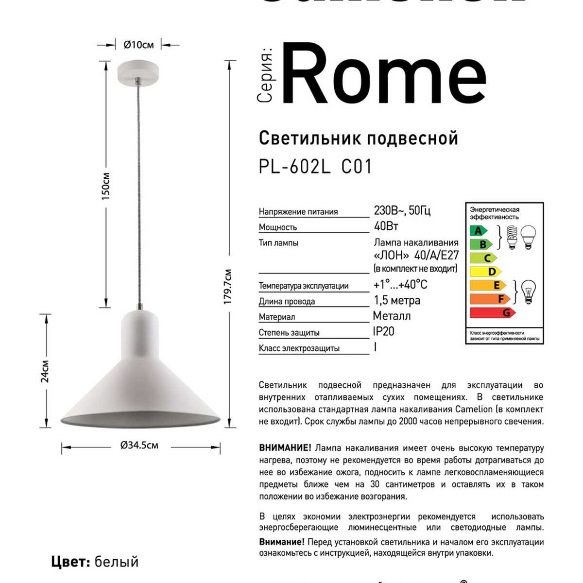 Восхитительная модель PL-602L C01 от российской компании Camelion . Подвесной светильник Camelion PL-602L C01 14556 осветит помещение площадью 2.7 кв. м. Производитель Camelion рекомендует использовать для устройства лампы накаливания с цоколем E27 и мощностью 40 W. Прибор произведен с использованием материала: металл и может использоваться для натяжного потолка. Основным цветом товара является Белый. Подвесной светильник PL-602L C01 14556 продается по цене 6267 руб. Торопитесь сделать заказ в интернет-магазине Top Otdelka.