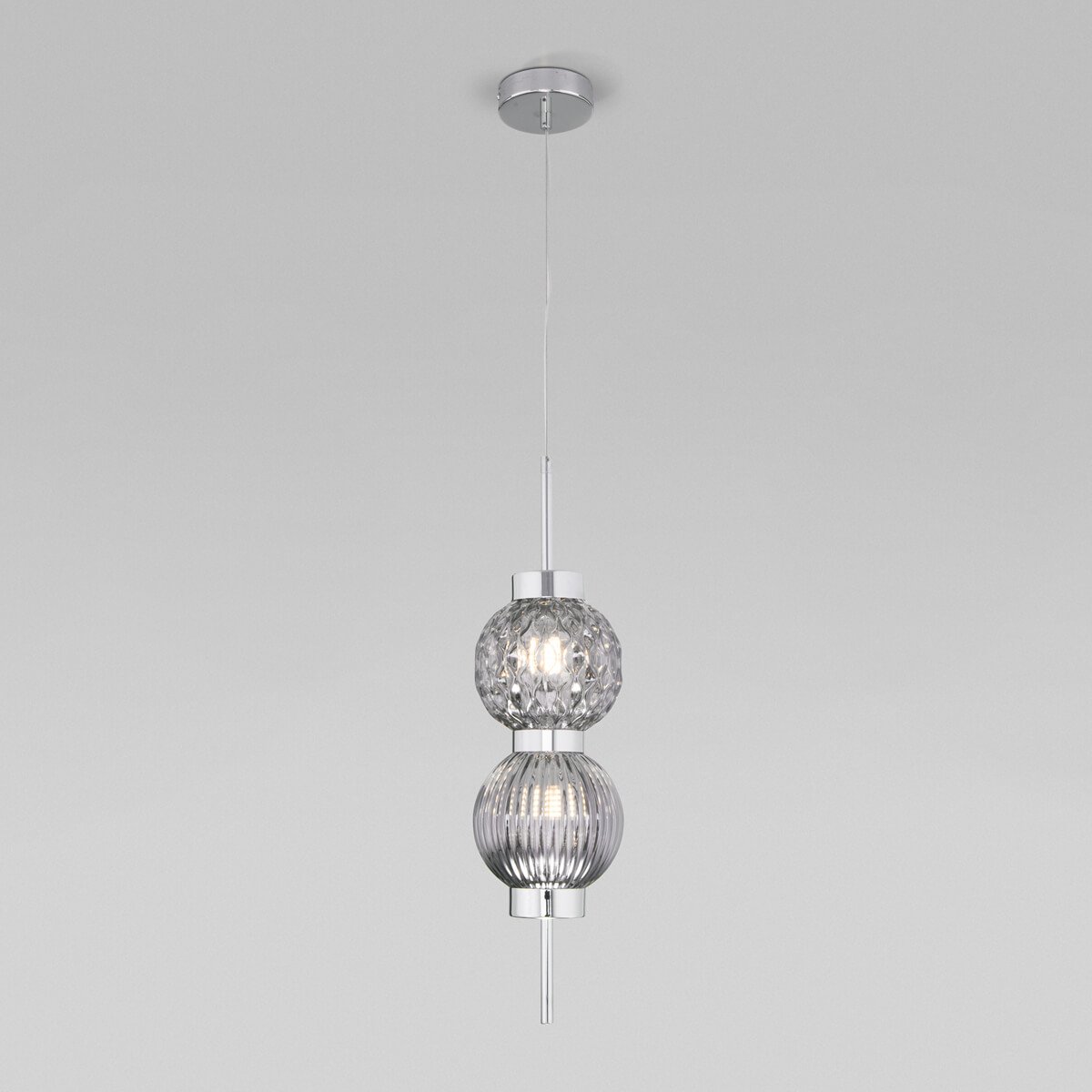 Потрясающая модель 50186/2 хром от российской компании Eurosvet относится к коллекции Plaza и отлично подойдет для установки на потолок спальни, оформленной в стиле арт-деко. Подвесной светильник Eurosvet Plaza 50186/2 хром с круглыми плафонами осветит помещение площадью 7 кв. м. Производитель Eurosvet рекомендует использовать для устройства светодиодные лампы с цоколем G9 и мощностью 7 W. Прибор произведен с использованием материалов: стекло и металл и может использоваться для натяжного потолка. Основным цветом товара является Дымчатый и Серебристо-стальной. Подвесной светильник 50186/2 хром продается по цене 12400 руб. Торопитесь сделать заказ в интернет-магазине Top Otdelka.