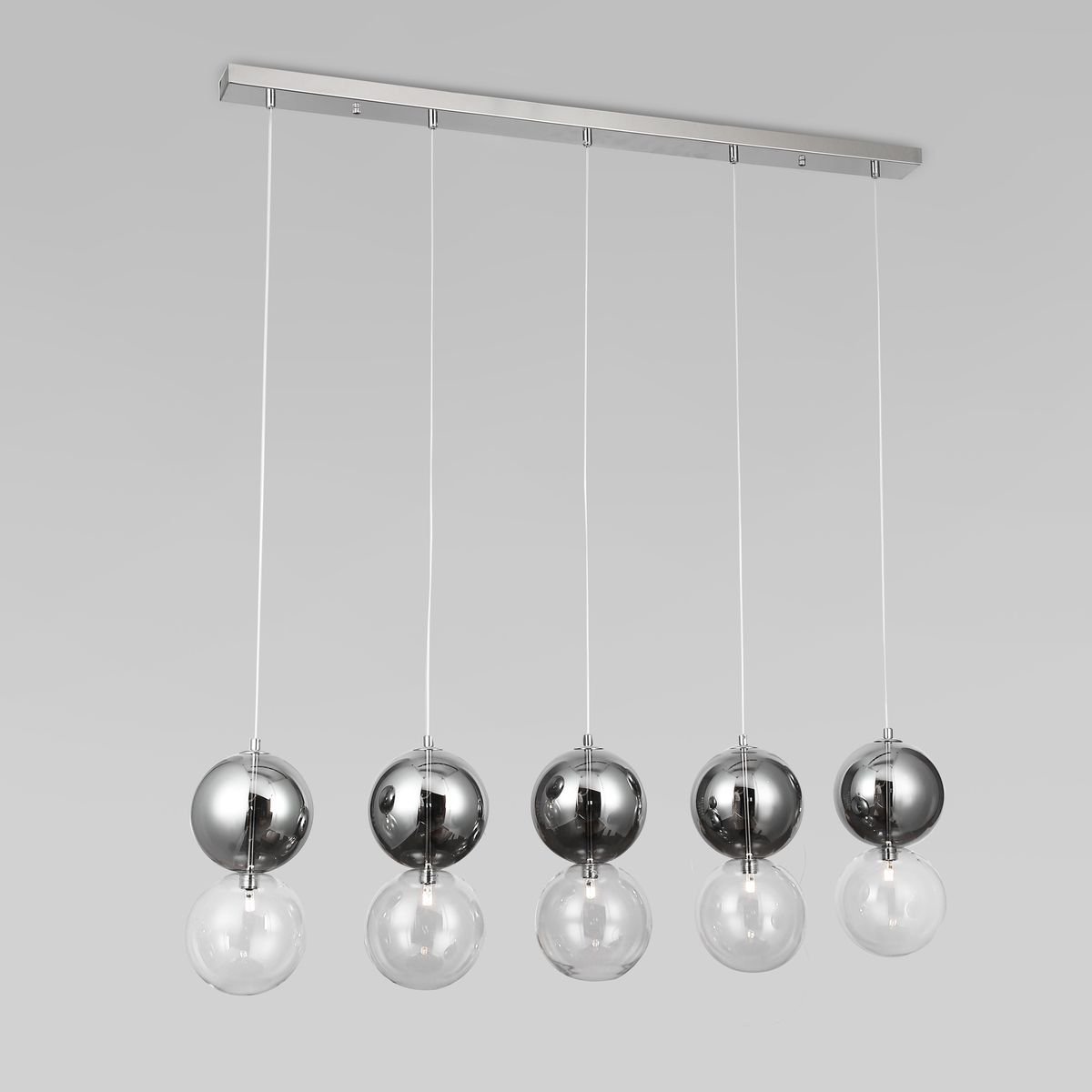 Превосходная модель 50091/5 хром/дымчатый от российской компании Eurosvet относится к коллекции Selisa и отлично подойдет для установки на потолок кафе и ресторанов, оформленных в стиле хай-тек. Подвесной светильник Eurosvet Selisa 50091/5 хром/дымчатый с плафонами в виде шаров осветит помещение площадью 3 кв. м. Производитель Eurosvet рекомендует использовать для устройства галогеновые лампы с цоколем G4 и мощностью 3 W. Прибор произведен с использованием материалов: стекло и металл и может использоваться для натяжного потолка. Основным цветом товара является Дымчатый, Серебристо-стальной и Прозрачный. Подвесной светильник 50091/5 хром/дымчатый продается по цене 31000 руб. Торопитесь сделать заказ в интернет-магазине Top Otdelka.
